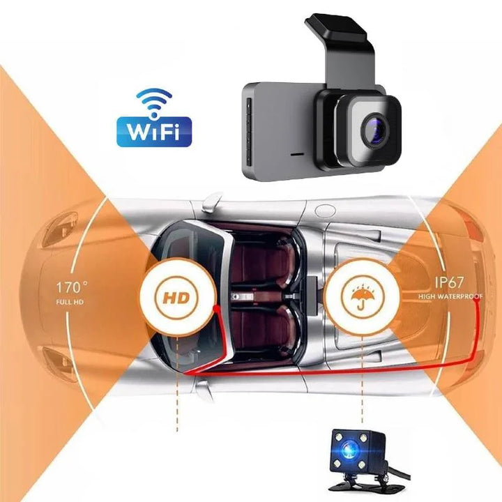 Cameră Auto de Bord cu WiFi Full HD 1080P – Cameră Dublă Față + Spate, Night Vision