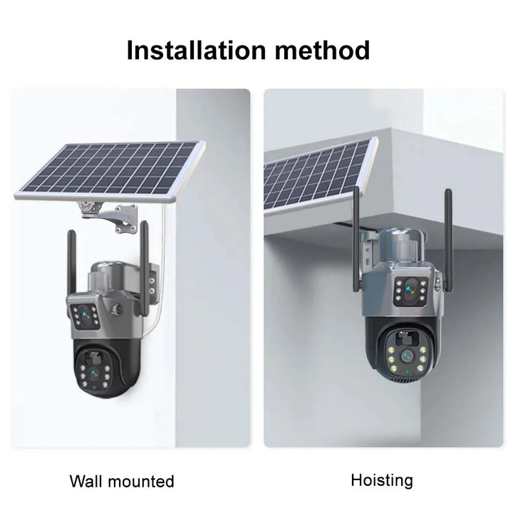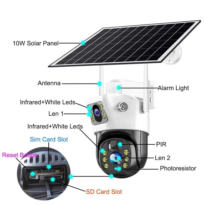 Camera de supraveghere cu panou solar,4G slot sim ,senzor de miscare,lentile duble,4K HD 8MP