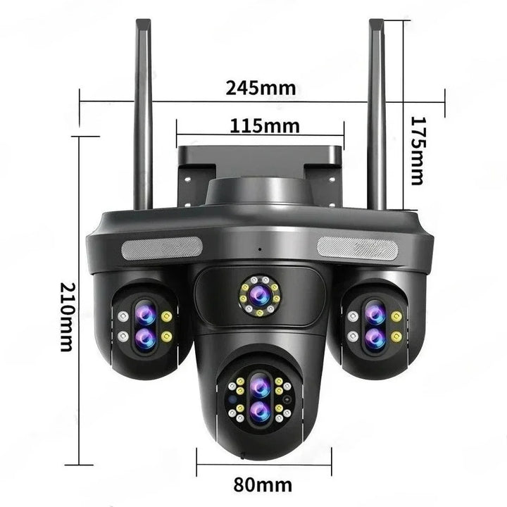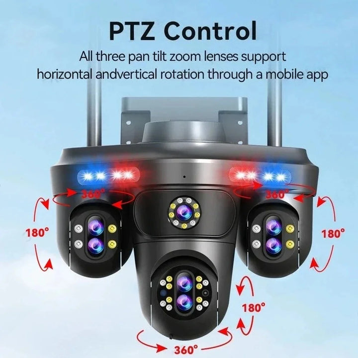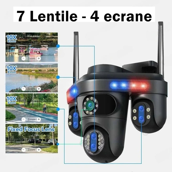 Transformă-ți siguranța locuinței sau afacerii cu noua cameră inteligentă 7 Lens & 4 Screen PTZ, un sistem de supraveghere de ultimă generație ce combină șapte lentile HD cu patru camere motorizate PTZ controlabile direct din aplicație.