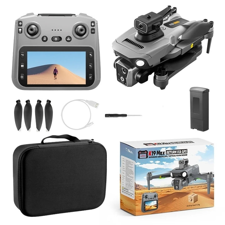 Drona K19 MAX GPS 5G, Evitare Obstacole 360°, Camera Duala HD, Motor Brushless, Telecomanda Ecran 4.5”
