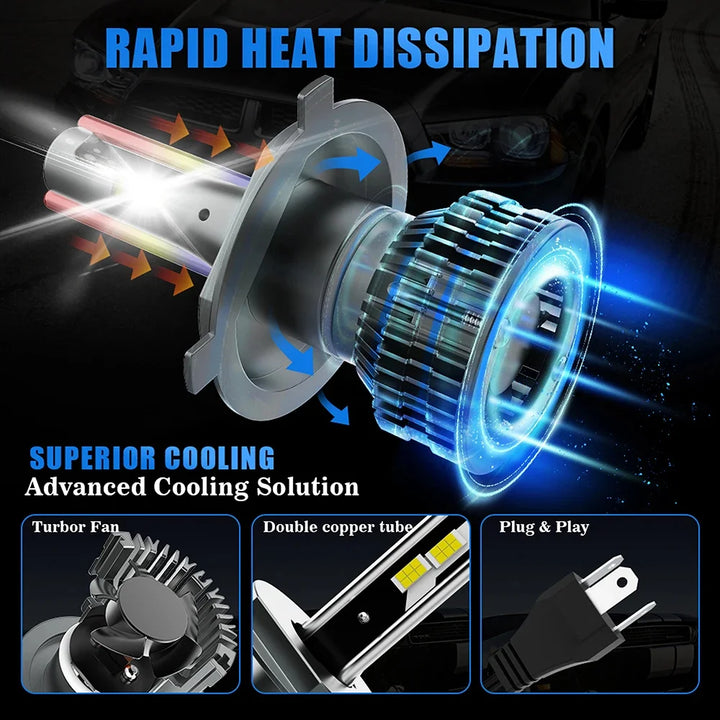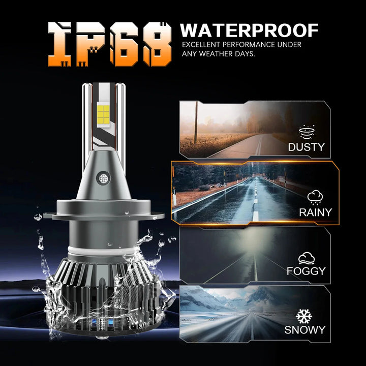 - Luminozitate impresionantă: Fluxul luminos de 30000 de lumeni per set oferă o vizibilitate superioară, luminând drumul mult mai eficient. Acest lucru îți permite să vezi mai departe și să reacționezi mai rapid la obstacole sau pericole.